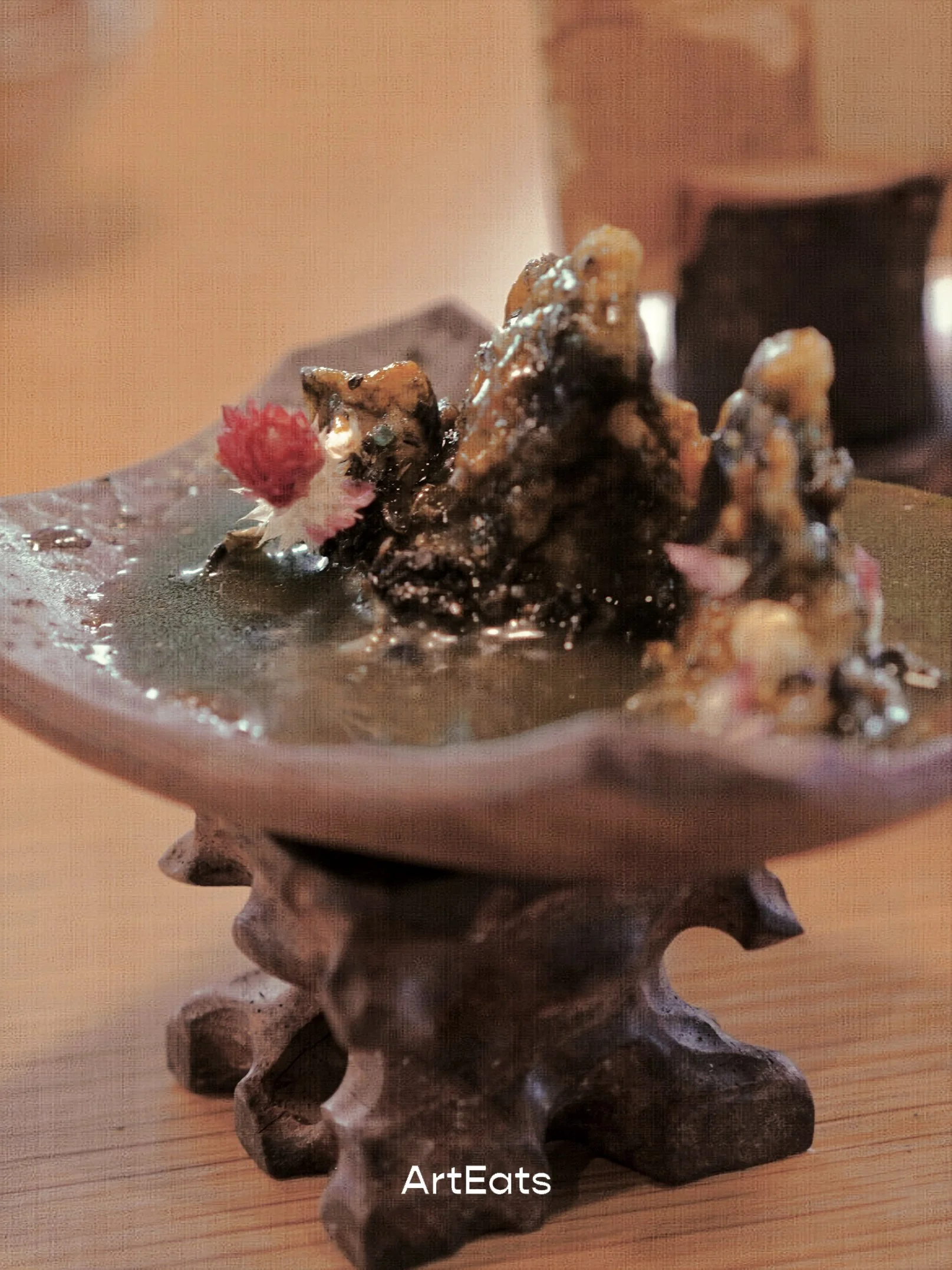 Rooted in introspection and poetic restraint, through delicate flavors and mindful arrangement, we explore how mountains and rivers become metaphors for solitude, harmony, and the taste of inner freedom and life’s impermanence. We make edible landscapes like the ancient literati artists.
